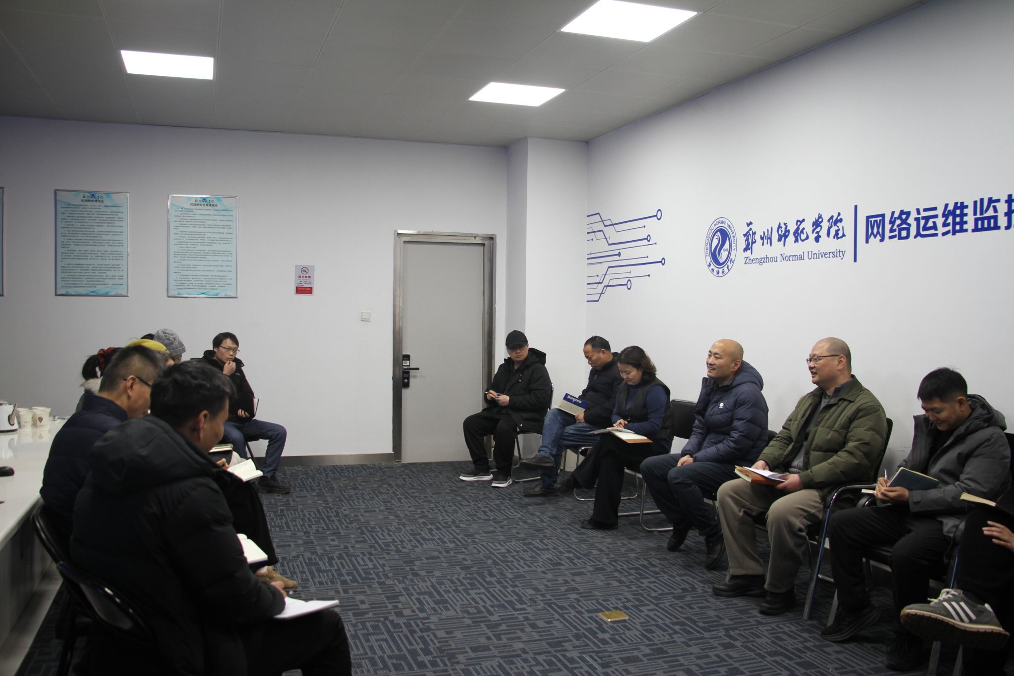 郝伟旭对黄继海一行的到访表示热烈欢迎,并从信息化建设整体布局、校园网络运维体系构建、技术团队梯队化建设等维度,详细介绍我校信息化建设的阶段性成果与实践经验。黄继海介绍了郑州工程技术学院信息化建设的发展历程与核心成果。他表示,学院正处于信息化建设的关键升级期,郑州师范学院在信息化领域的探索成果具有很强的借鉴意义,将为学院下一步信息化工作的推进提供重要参考。